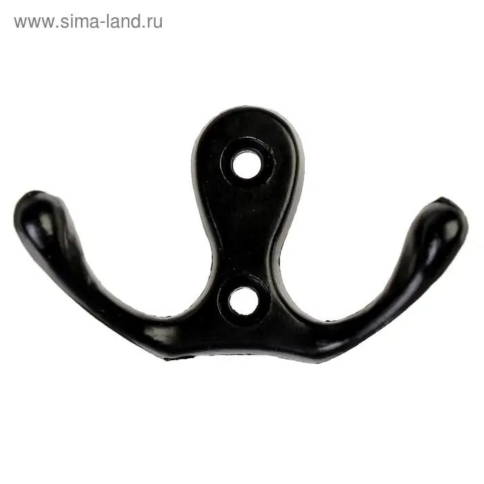 Крючок мебельный ТУНДРА TKd=003, двухрожковый, черный, 5 шт.