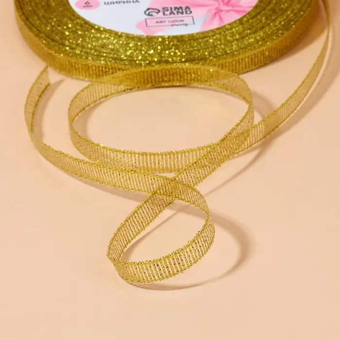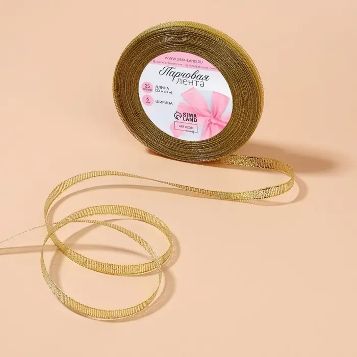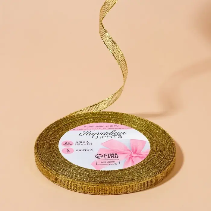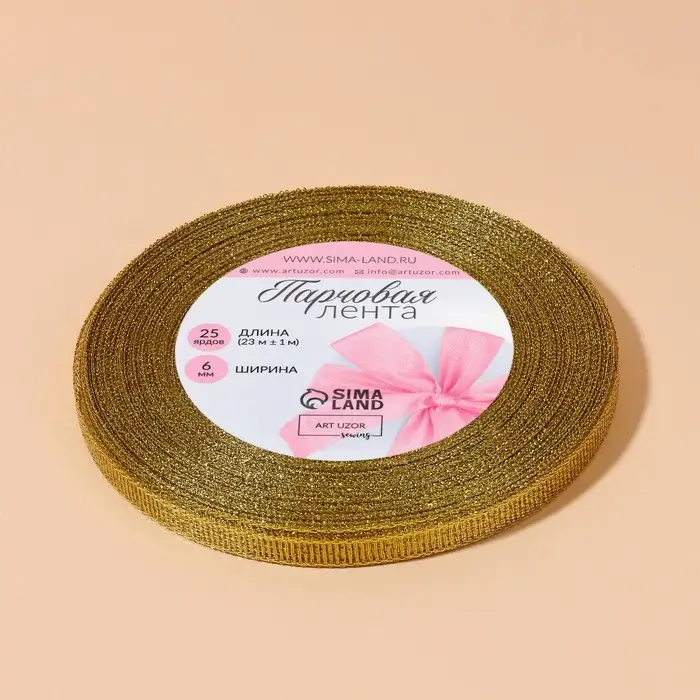 Лента парчовая, 6 мм, 23±1 м, цвет золотой