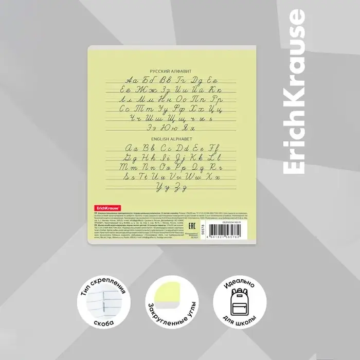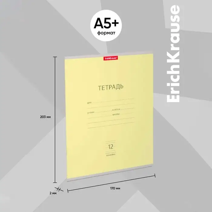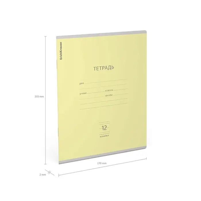 Тетрадь школьная ученическая формата А5+ (170х203 мм). Обложка из высококачественного мелованного картона плотностью 180 г/м2. В блоке 12 листов в линейку с полями. Бумага офсетная плотностью 60 г/м2. Цвет линовки - синий. Скругленные уголки обложки и блока. Тип скрепления - скоба. Тетради упакованы в термоусадочную пленку по 10 штук.