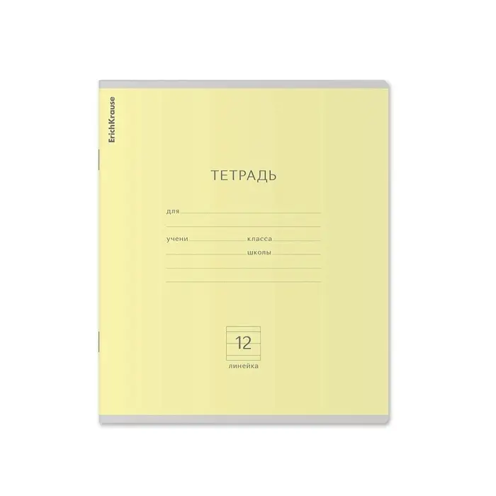 Тетрадь 12 листов в линейку ErichKrause «Классика», обложка мелованный картон, блок офсет, белизна 100%, жёлтая