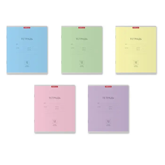 Тетрадь школьная ученическая формата А5+ (170х203 мм). Обложка из высококачественного мелованного картона плотностью 180 г/м2. В блоке 12 листов в узкую линейку с полями. Бумага офсетная плотностью 60 г/м2. Цвет линовки - синий. Скругленные уголки обложки и блока. Тип скрепления - скоба. Тетради одного цвета упакованы в термоусадочную пленку по 10 штук. Товар поставляется в нескольких вариантах цвета без возможности выбора.