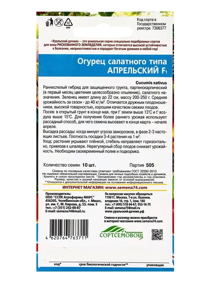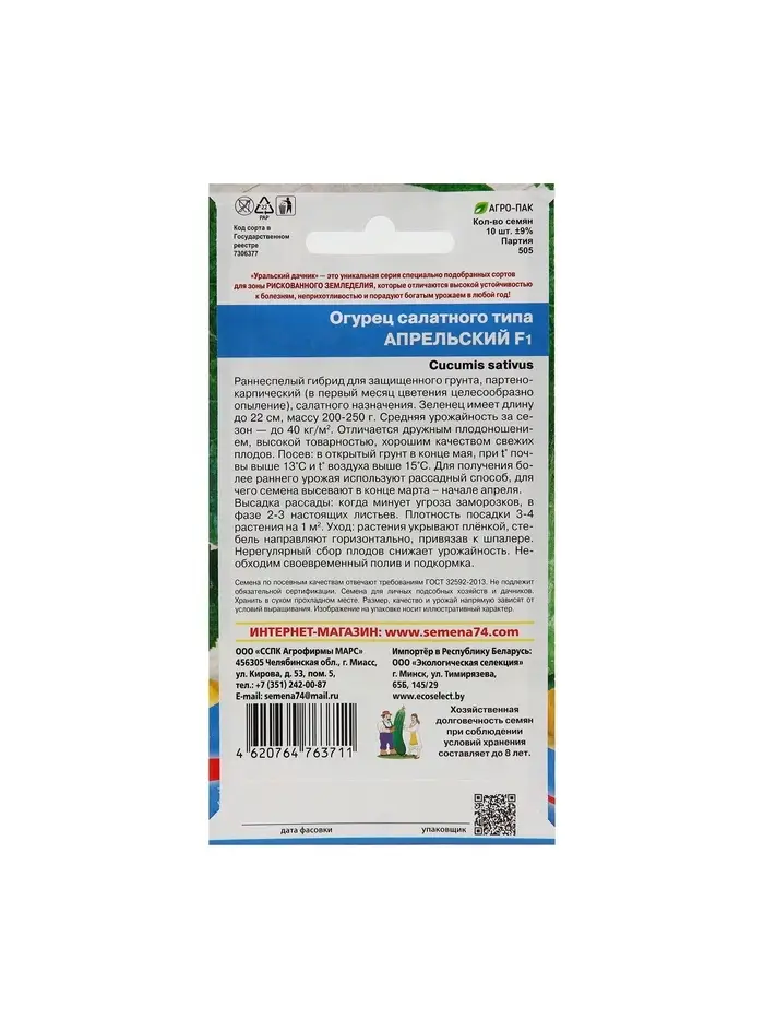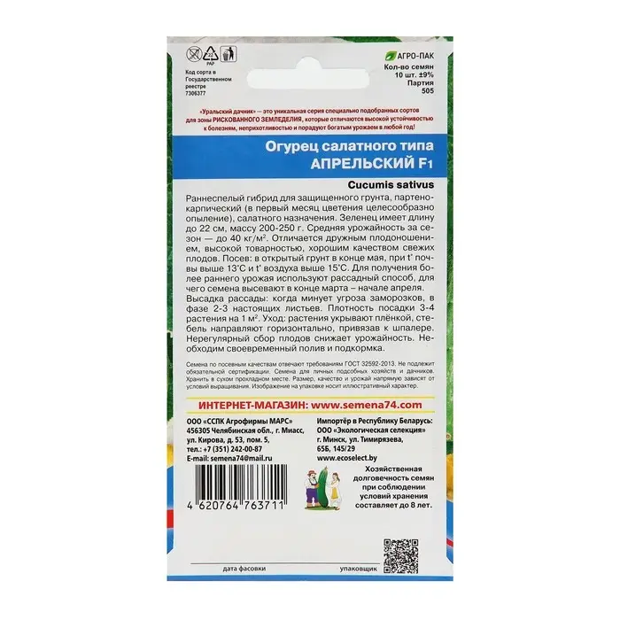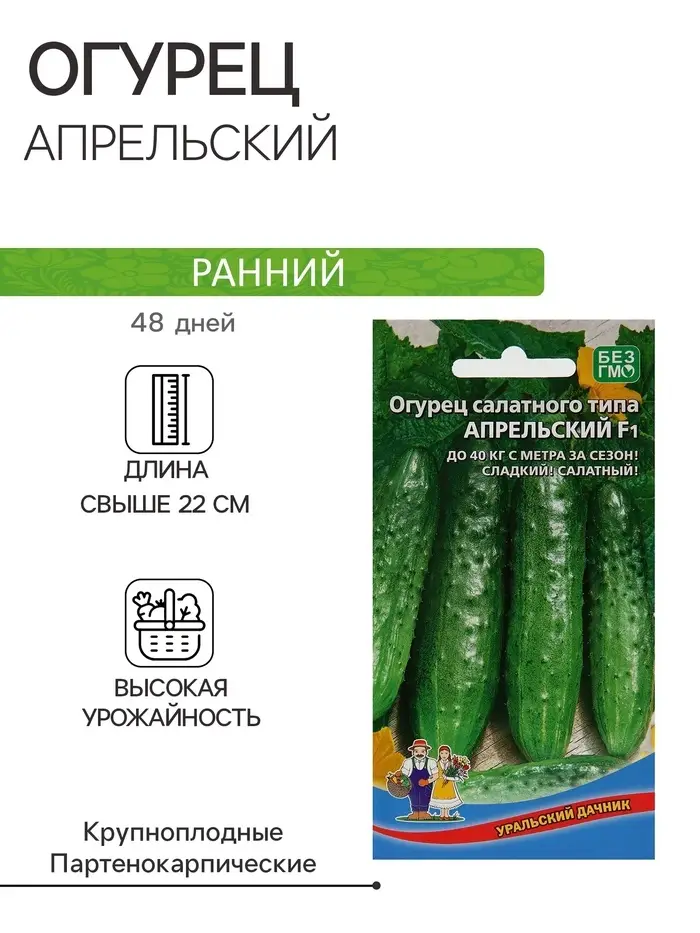 Семена Огурец Апрельский F1, скороспелый, партенокарпический, 10шт