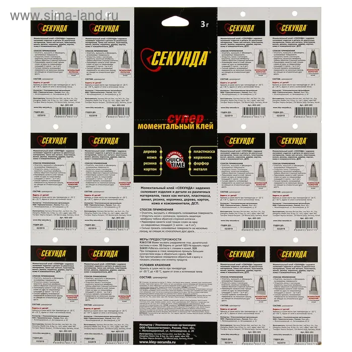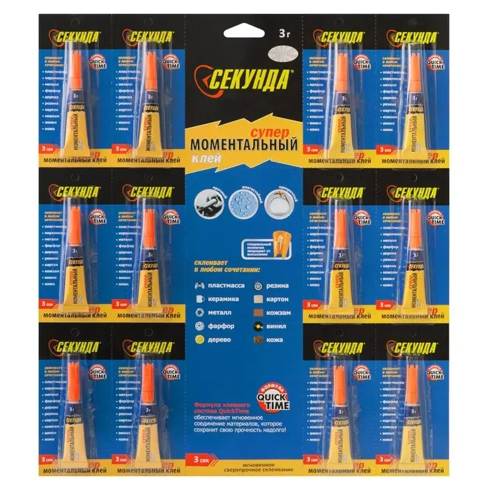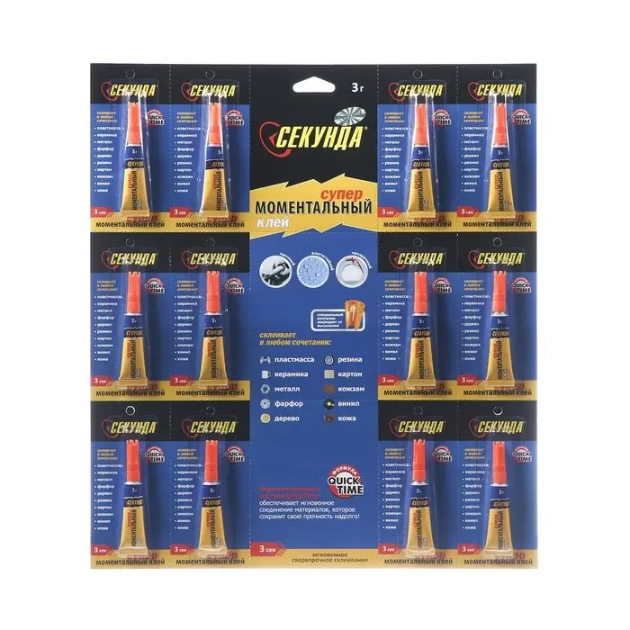 Моментальный клей "Секунда" на листе, 3 г