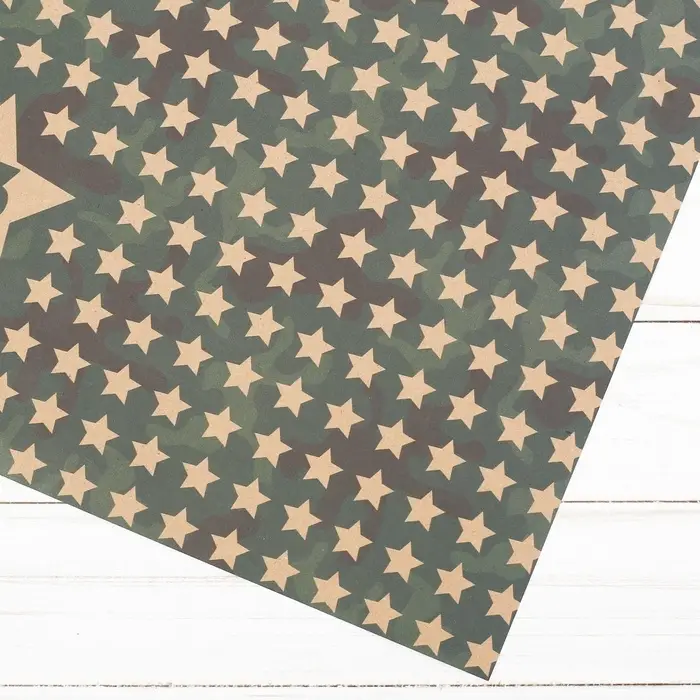 Бумага упаковочная крафтовая «Звёзды 23 февраля», 50 х 70 см