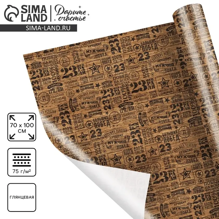 Бумага упаковочная глянец «Самый смелый», 23 февраля, 100 х 70 см