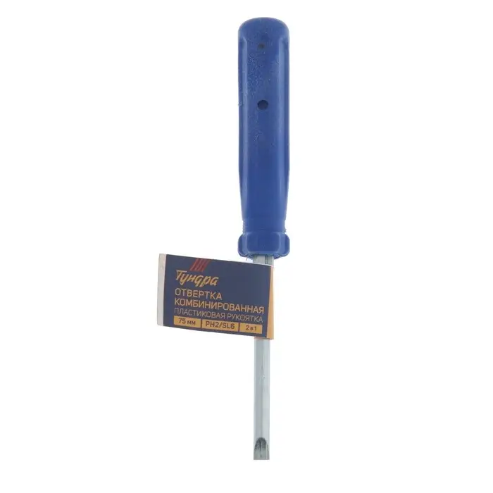 Отвертка комбинированная ТУНДРА, 2 в 1, пластиковая рукоятка, PH2/SL6×75 мм