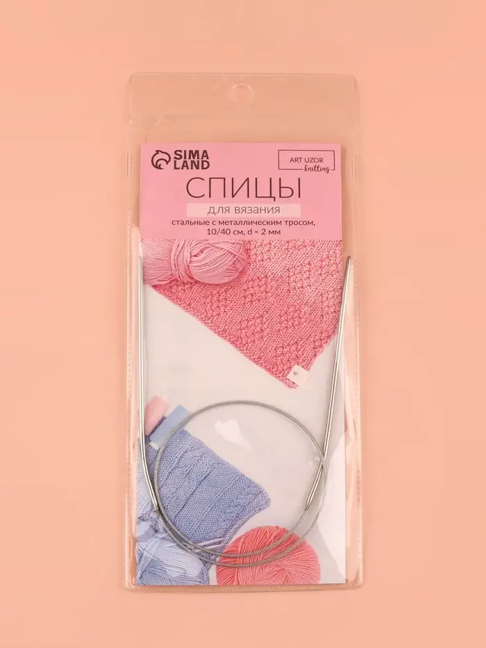 Спицы круговые, для вязания, с металлическим тросом, d=2 мм, 10/40 см