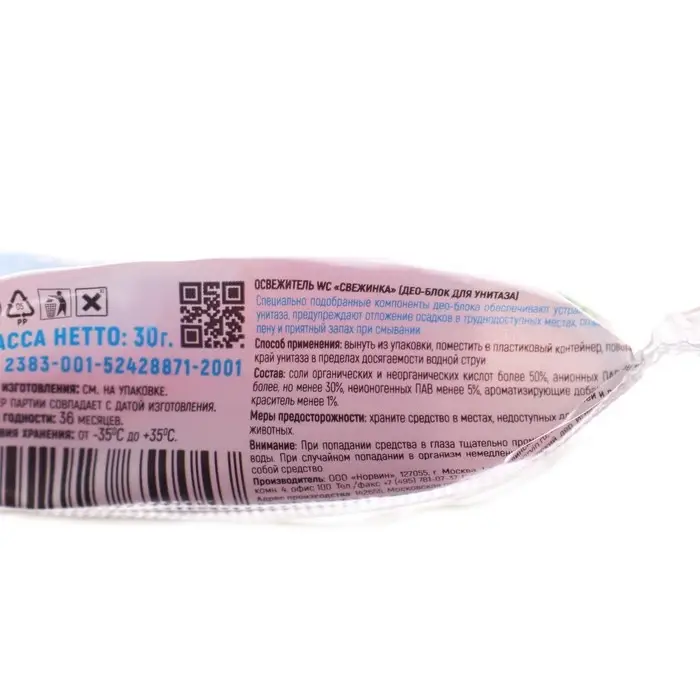 Способ применения: вынуть из упаковки, повесить на край унитаза в пределах досягаемости водной струи.