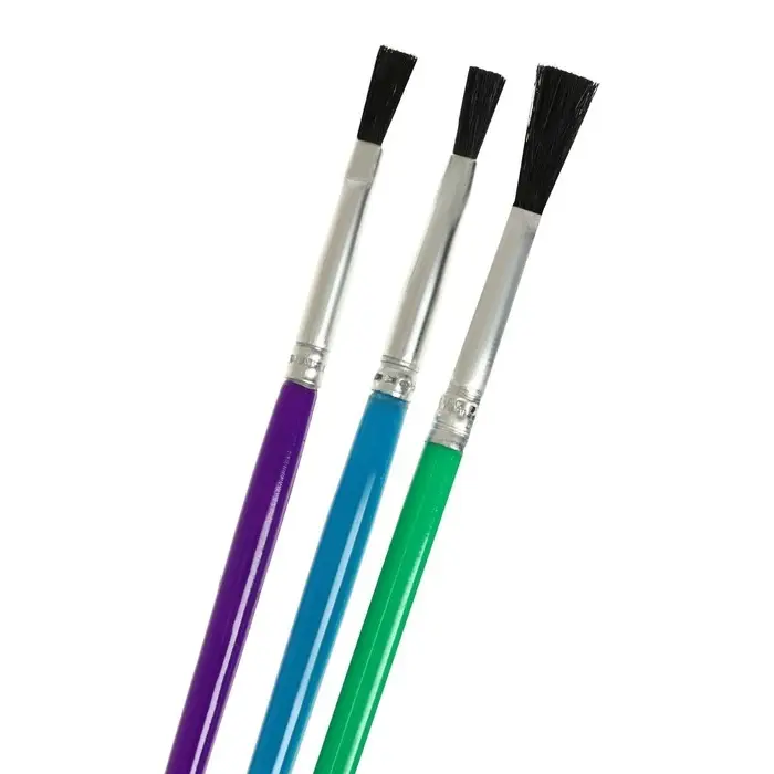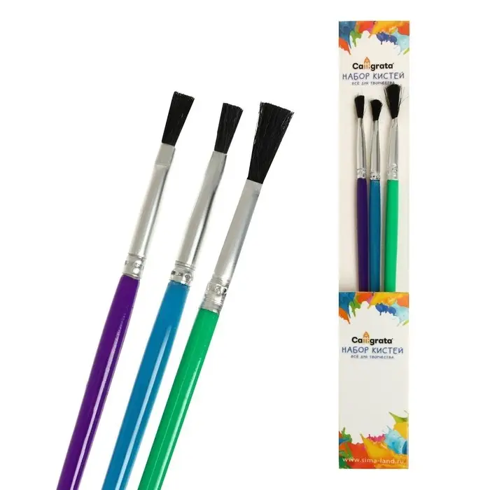 Набор кистей нейлон, 3 штуки, плоские, с пластиковыми, цветными ручками