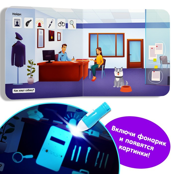 Книга с фонариком «Что где спрятано?», 24 стр.