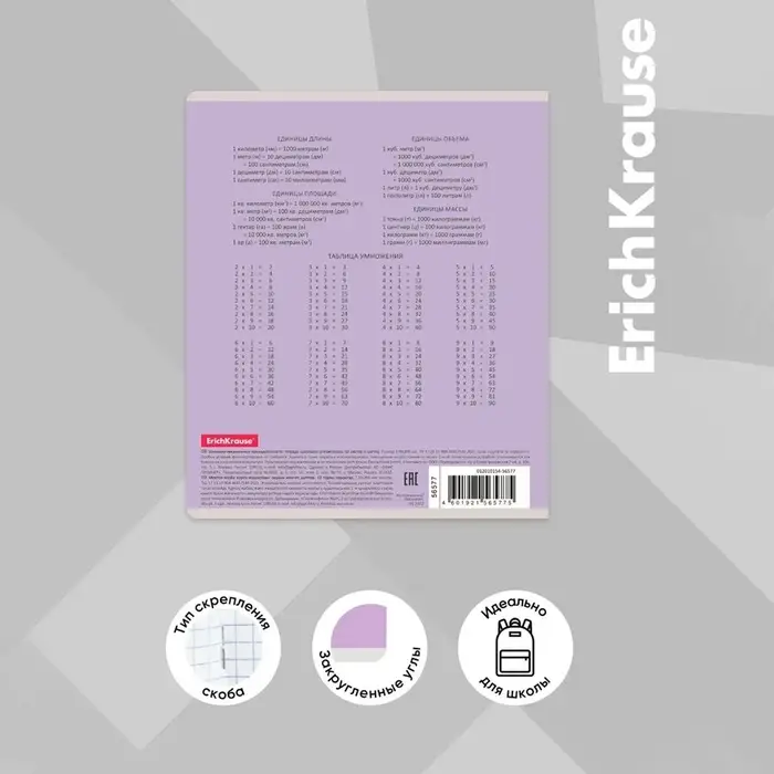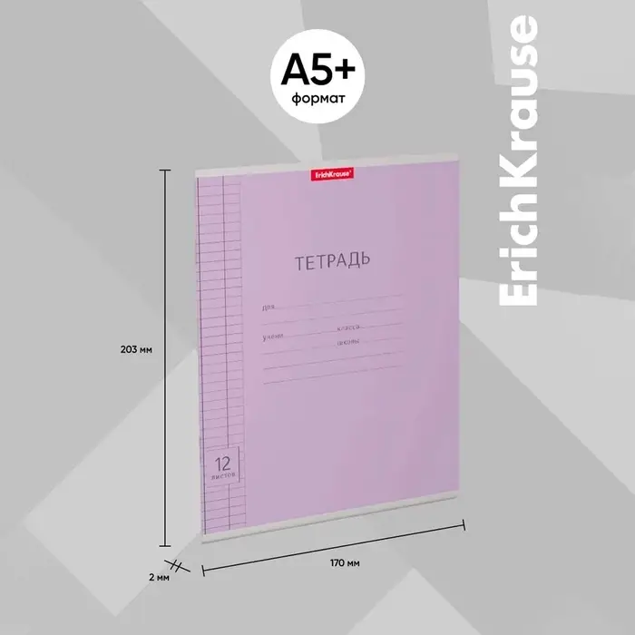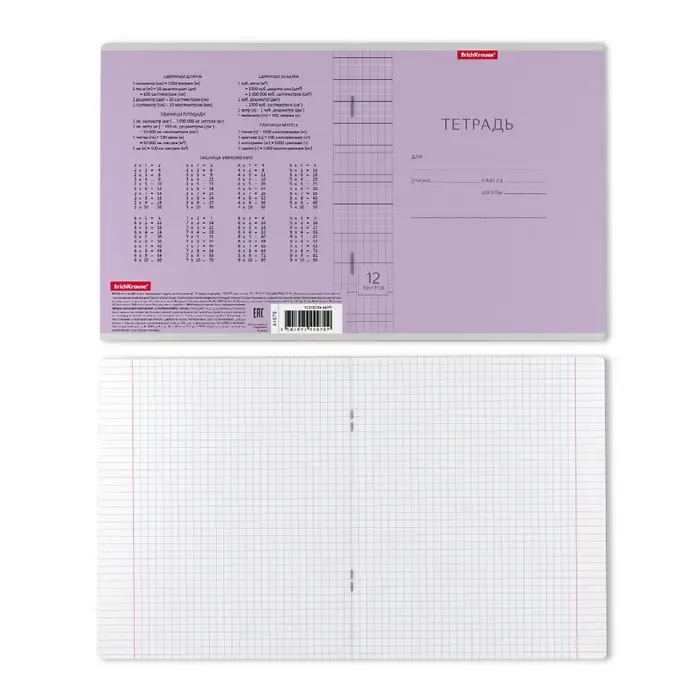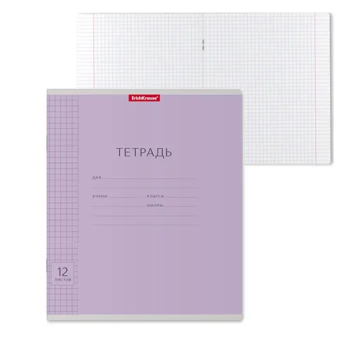 Тетрадь 12 листов в клетку ErichKrause «Классика», обложка мелованный картон, фиолетовая