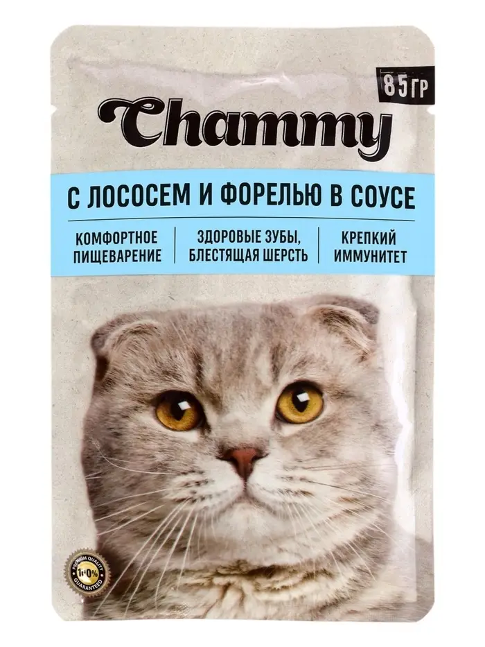 Влажный корм Chammy для кошек, лосось/форель в соусе, пауч, 85 г