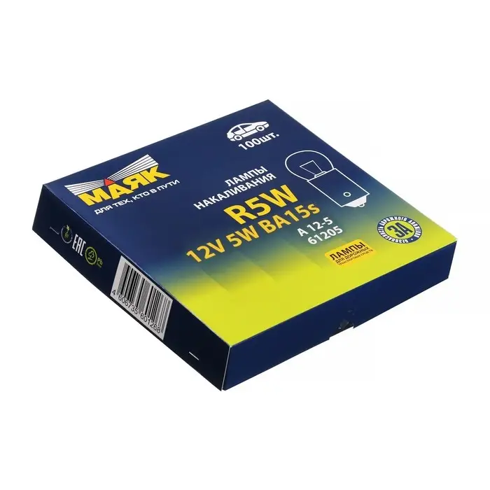 Автомобильная лампа Маяк R5W на 24В (BA15S) - это качественный источник освещения, используемый в передних и задних габаритах, указателях поворота, подсветке номерного знака и других осветительных приборах автомобиля. Лампа обладает мощностью 5Вт, обеспечивая яркое и равномерное освещение. Корпус лампы, изготовленный из прочного материала, устойчив к вибрации и внешним воздействиям, что увеличивает срок службы лампы. Установка лампы осуществляется быстро и легко без необходимости использования специальных инструментов. С автомобильной лампой Маяк ваш автомобиль будет хорошо виден на дороге в любых погодных условиях.