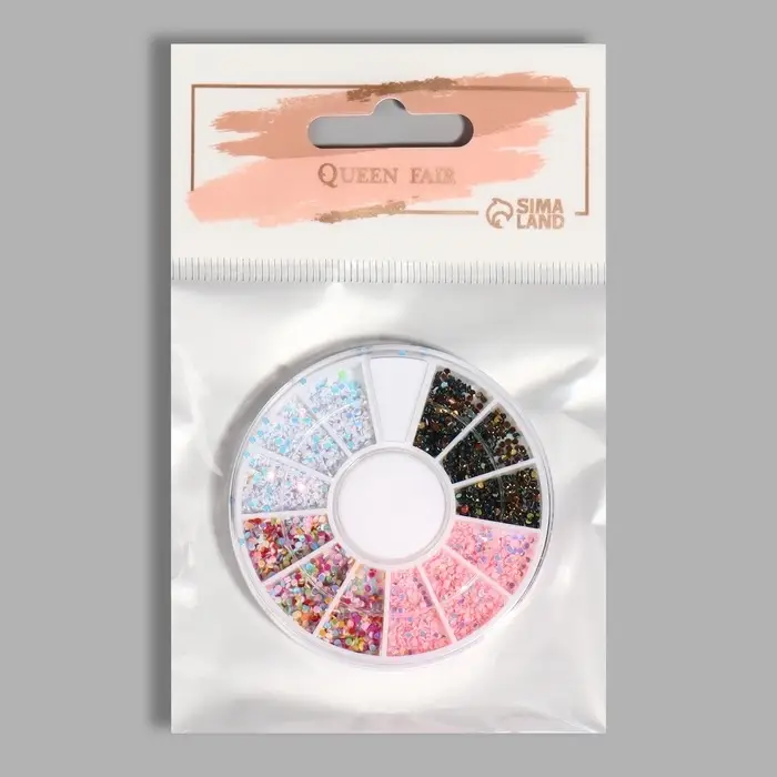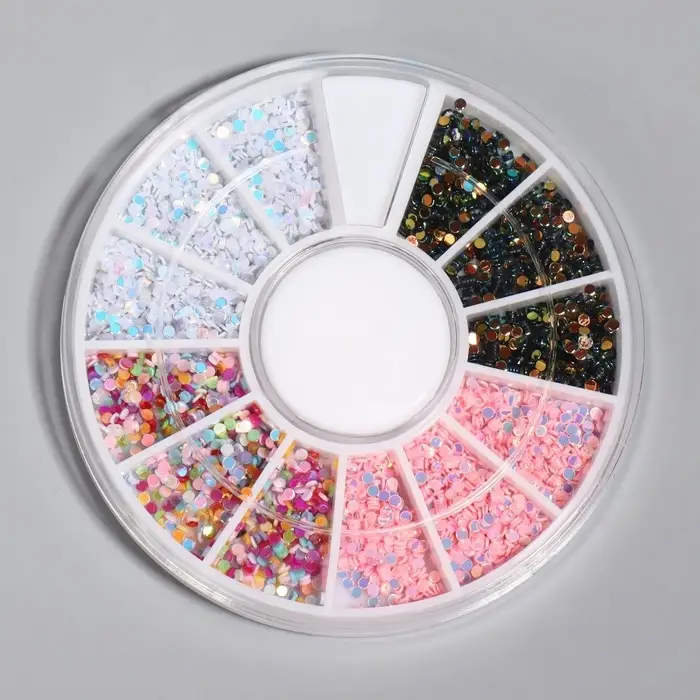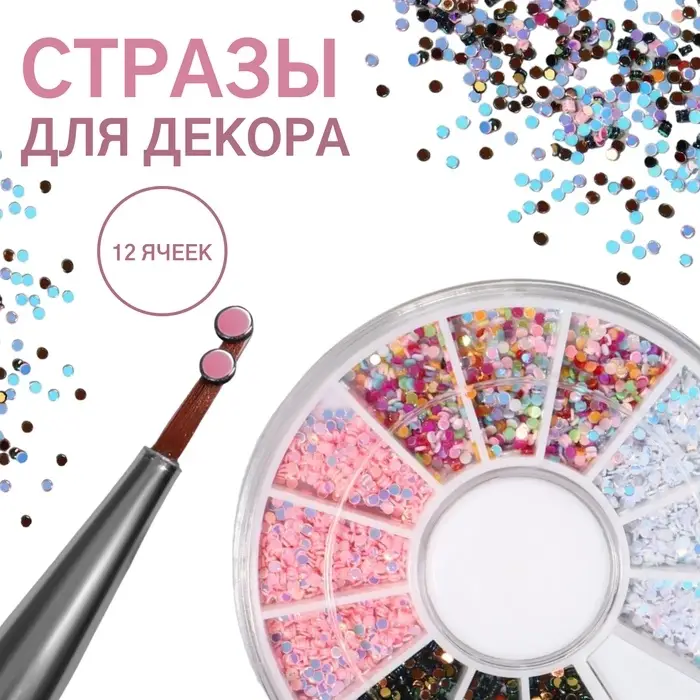 Стразы для декора, 1 мм, 12 ячеек, разноцветные