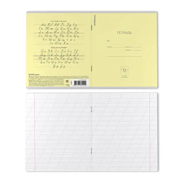Тетрадь 12 листов в косую линейку, ErichKrause «Классика», обложка мелованная бумага, желтая