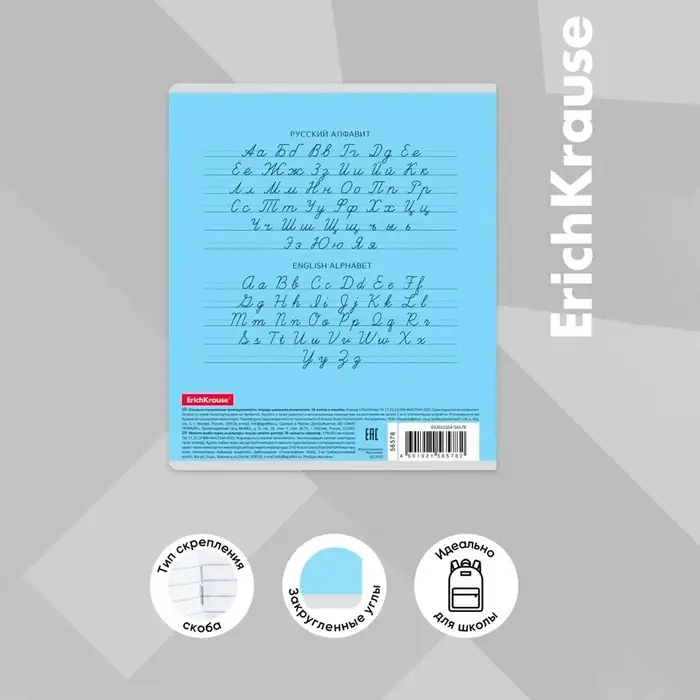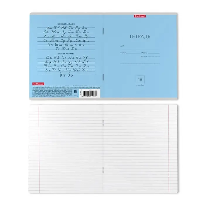 Тетрадь школьная ученическая формата А5+ (170 х 203 мм). Обложка из высококачественного мелованного картона плотностью 180 г/м2. В блоке 18 листов в линейку с полями. Бумага офсетная плотностью 60 г/м2. Цвет линовки - синий. Скругленные уголки обложки и блока. Тип скрепления - скоба. Тетради упакованы в термоусадочную пленку по 10 штук.
