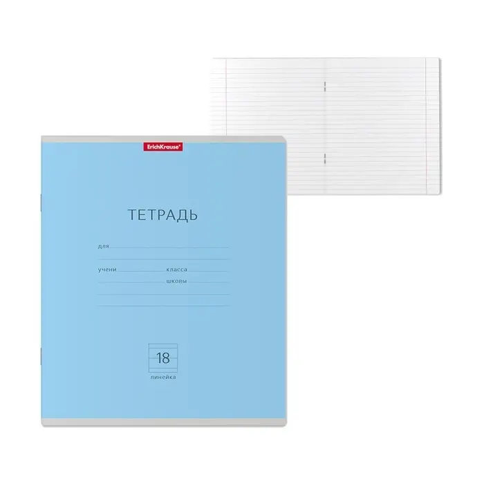 Тетрадь 18 листoв в линейку, ErichKrause «Классика», обложка мелованный картон, голубая