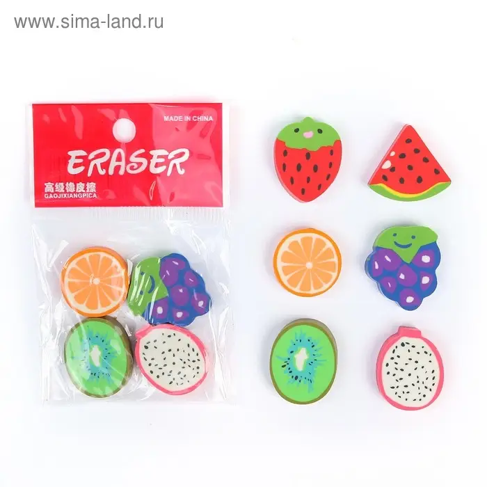 Набор фигурных ластиков «Фрукты/Ягоды», 4 штуки, в блистере, МИКС