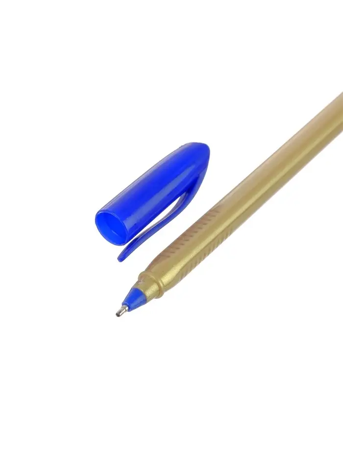 Ручка шариковая, 1.0 мм, стержень синий, корпус треугольный золотой