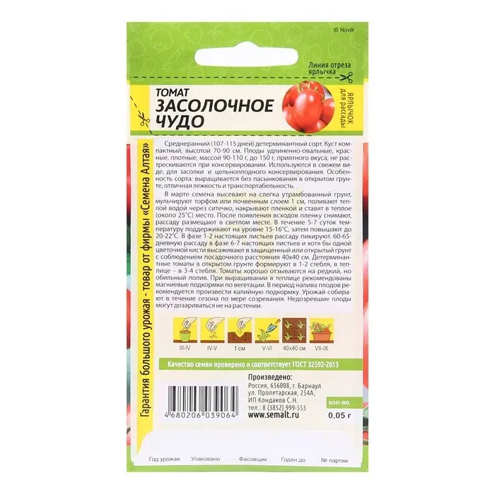 Семена Томат "Засолочное Чудо", среднеранний, цп, детерминантный, среднерослый 0,05 г