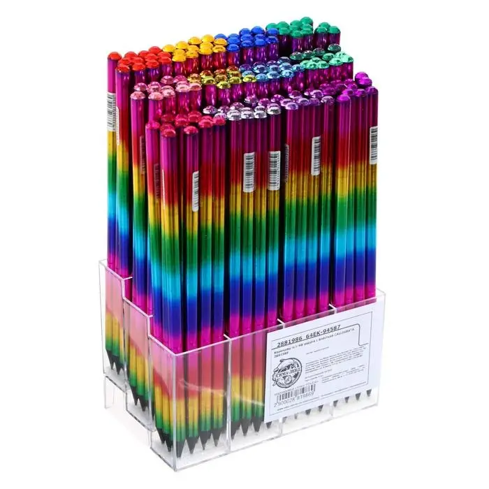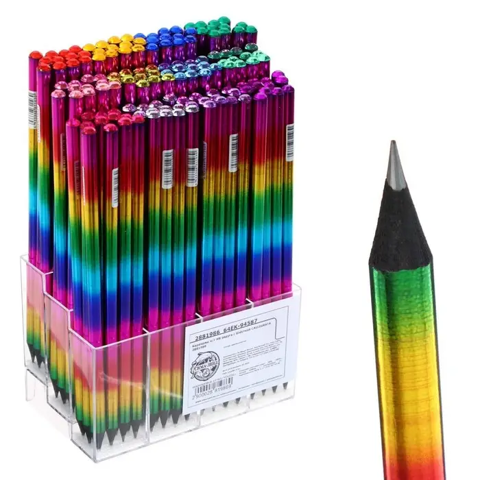Карандаш чернографитный твёрдость НВ, корпус "Радуга" голография, заточенный, со стразой из акрила, МИКС-прекрасное сочетание выгодной цены и высочайшего качества.