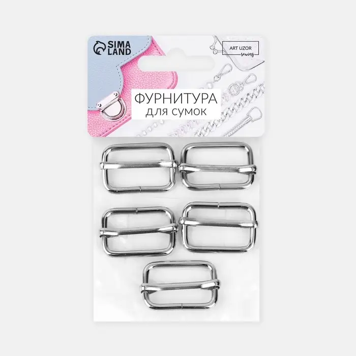 Пряжка регулирующая, вн. ширина=26 мм, s=3 мм, 5 шт., цвет серебряный