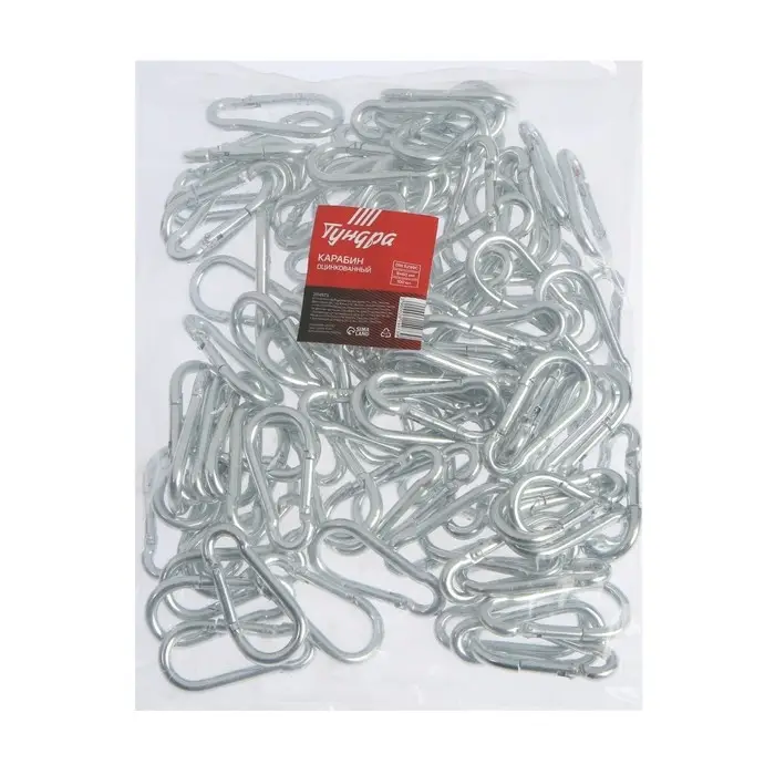 Карабин ТУНДРА krep изготовлен из высококачественного металла и оцинкован, что защищает его от коррозии.