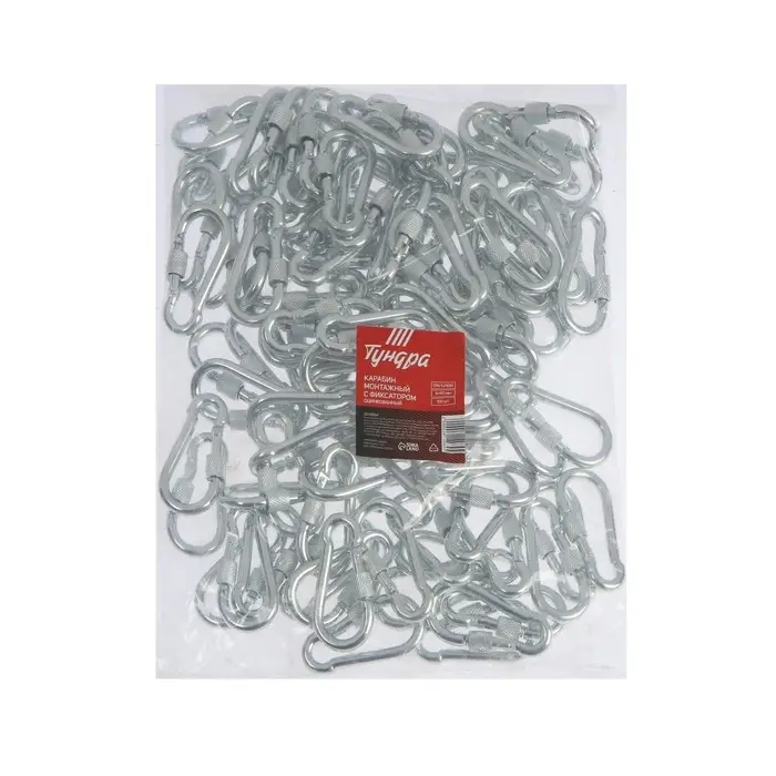 Карабин монтажный с фиксатором ТУНДРА krep применяется для быстрого, простого, надежного, разъемного соединения между собой цепей, тросов, веревок, ремней и т.п., а также для крепления их к различным конструкциям и основаниям.
