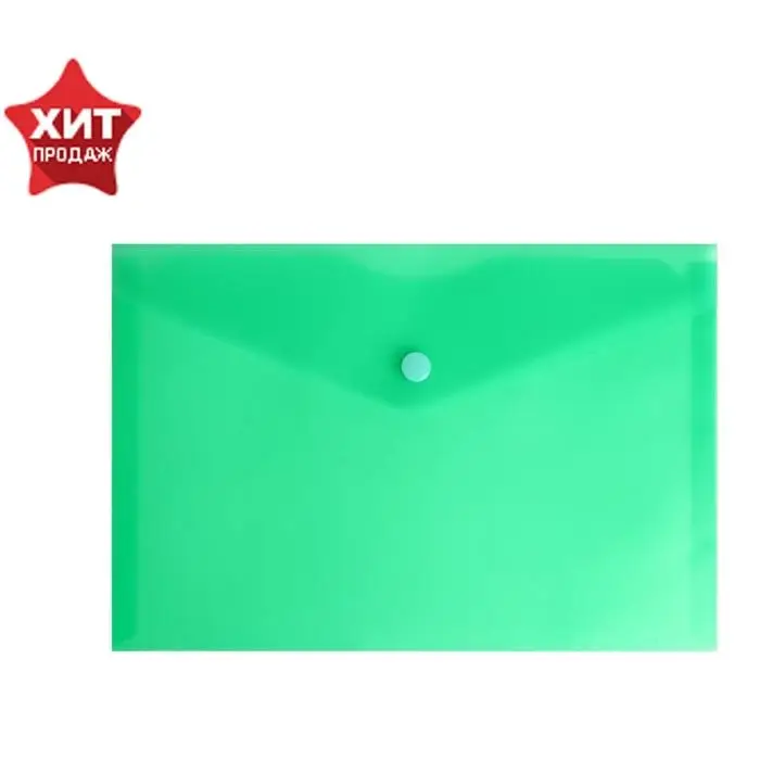 Папка-конверт на кнопке А5, 180 мкм, Calligrata Office, полупрозрачная, зеленая