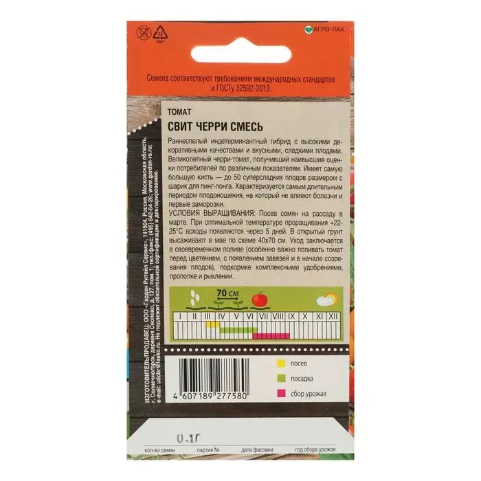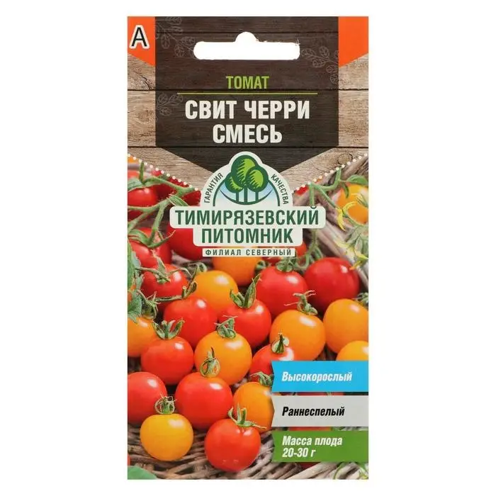 Индетерминантный ультраскороспелый, самый болезнеустойчивый гибрид. Великолепный черри-томат, получивший высокие оценки потребителей по различным показателям. Имеет самую большую кисть - до 50 суперсладких плодов размером с шарик для пинг-понга. Характеризуется самым длительным периодом плодоношения, на который не влияют болезни и первые заморозки.