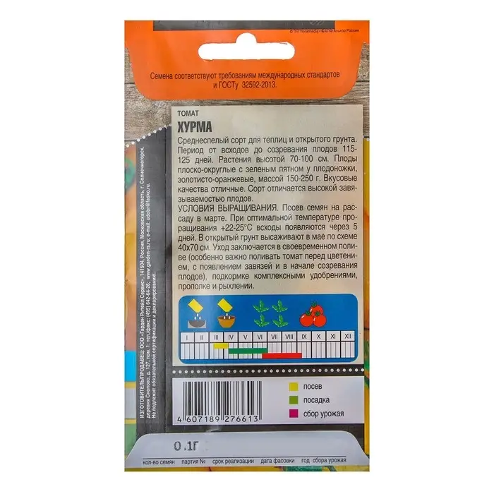 Среднеспелый сорт томатов. Этот помидор отличается высоким качеством плодов и длительным периодом, во время которого можно собирать урожай. Плоды имеют одновременно и плоскую, и круглую форму, характеризуются средней ребристостью; их вес может достигать 250 г. Высота растения в среднем составляет 1,2 м. Использовать томат Хурма можно в свежем виде, ведь в нем содержится большое количество полезного бета-каротина.