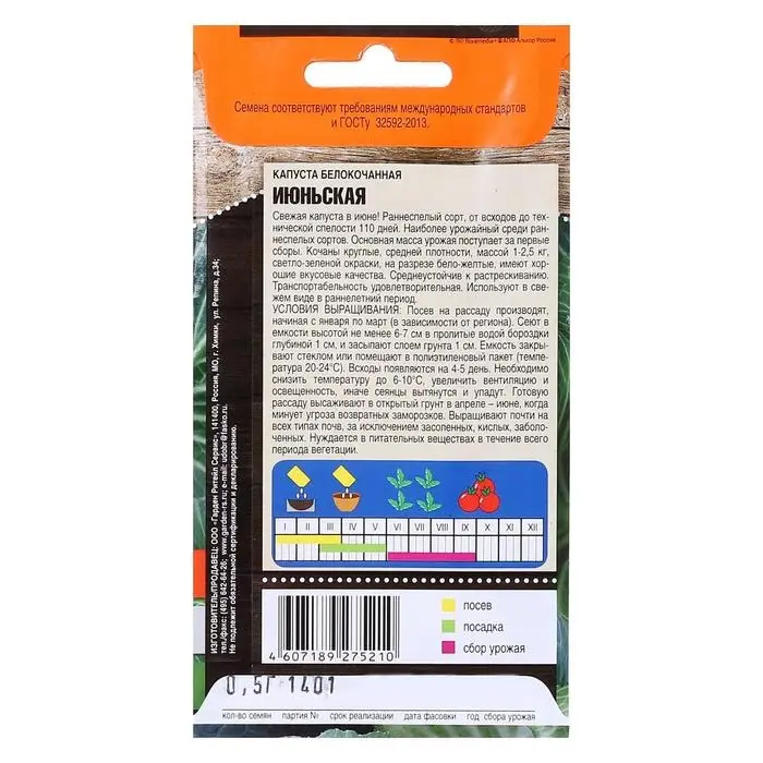 Семена Капуста белокочанная "Июньская" ранняя, 0,5 г