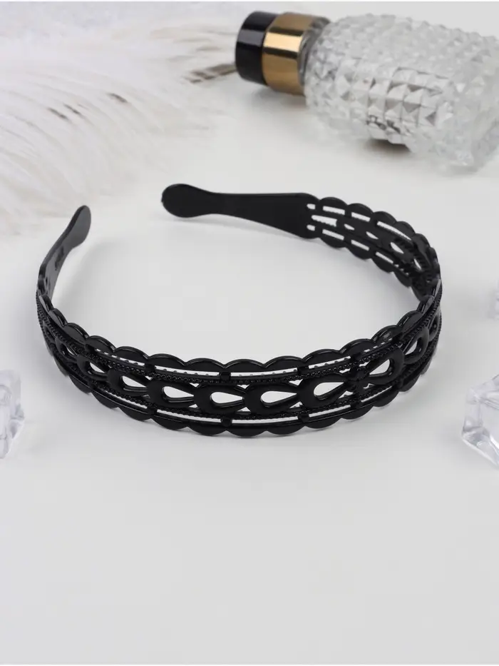 Черный аксессуар для волос с изысканным узором придаст вашему облику элегантность и неповторимость. Изготовленный из высококачественного пластика, этот классический ободок станет надежным союзником в создании стильных причесок. Убедитесь сами, как этот незаменимый элемент подчеркнет вашу индивидуальность, гарантируя, что каждая деталь вашего образа говорит громче слов.