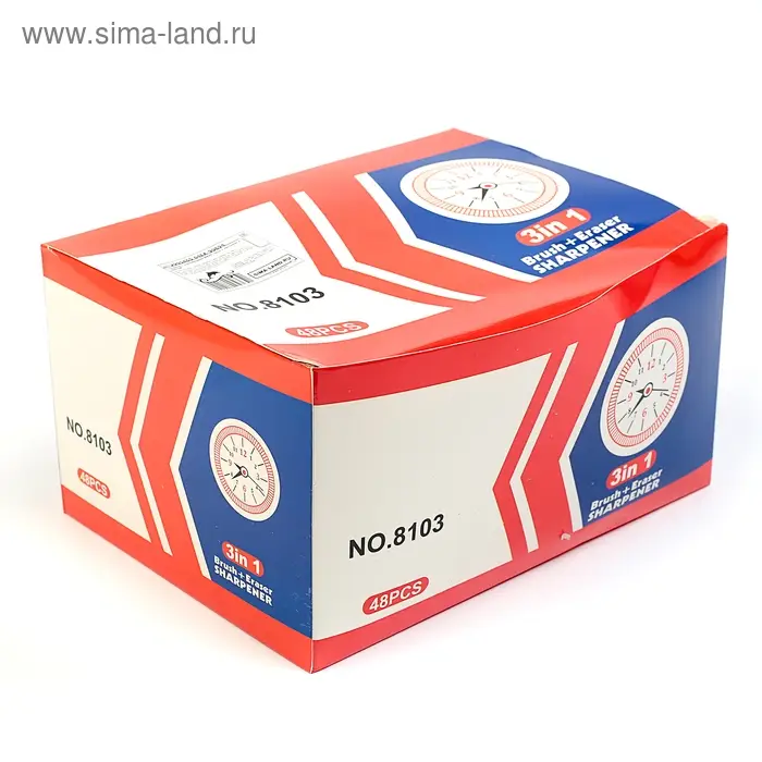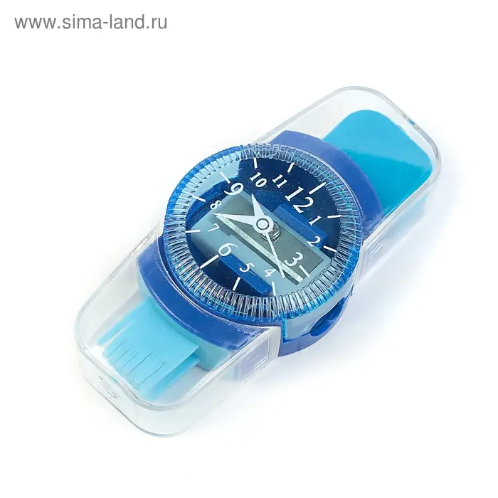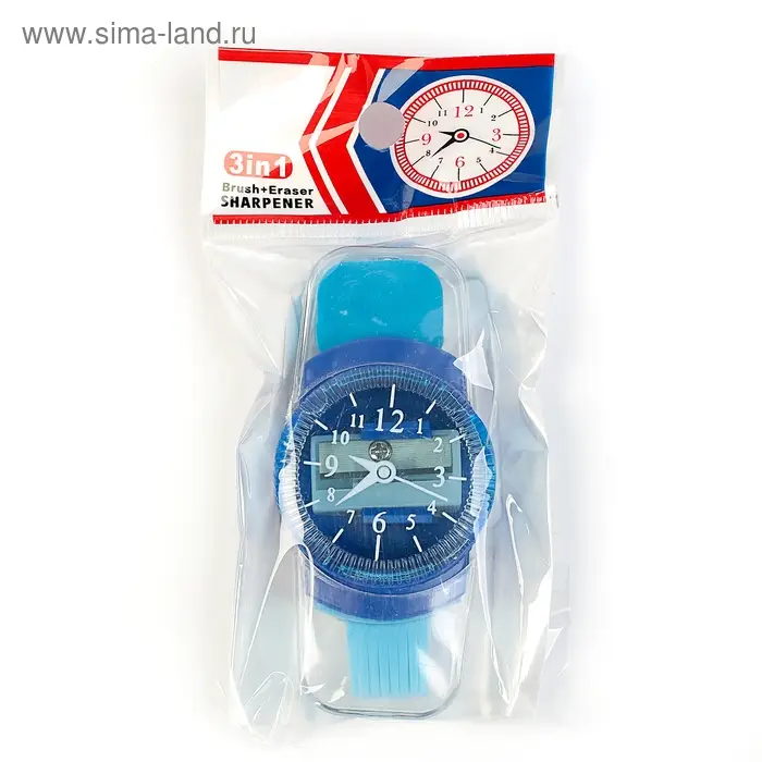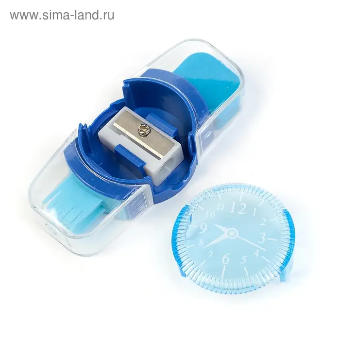 Точилка с контейнером «Часы», с ластиком и щеткой, МИКС