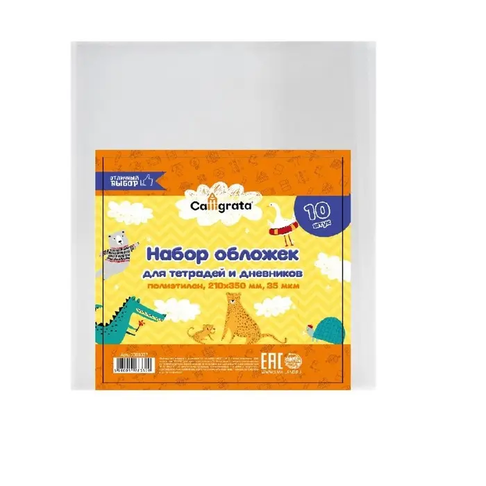 Набор обложек ПЭ 10 штук, 210 х 350 мм, 35 мкм, для тетрадей и дневников (в мягкой обложке)