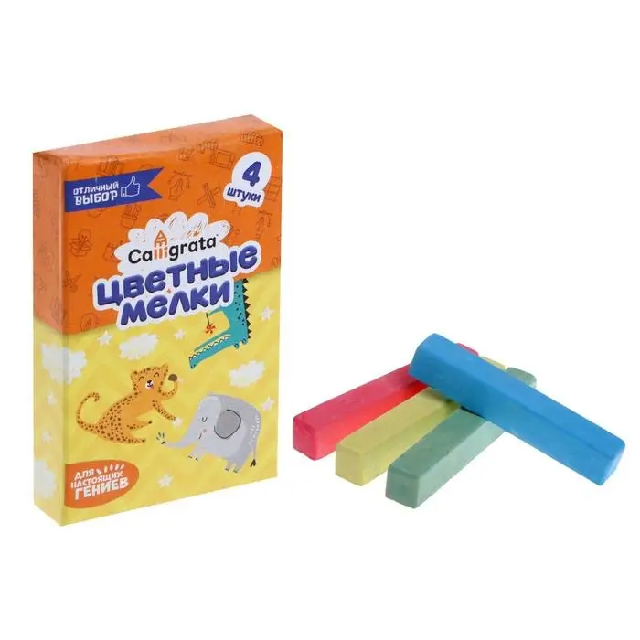 Мелки цветные Calligrata, в наборе 4 штуки, квадратные