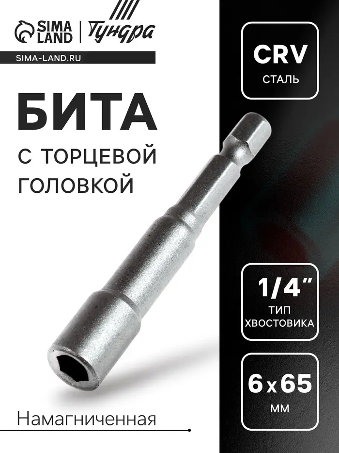Бита с торцевой головкой ТУНДРА, сталь CrV, магнит, 6 х 65 мм