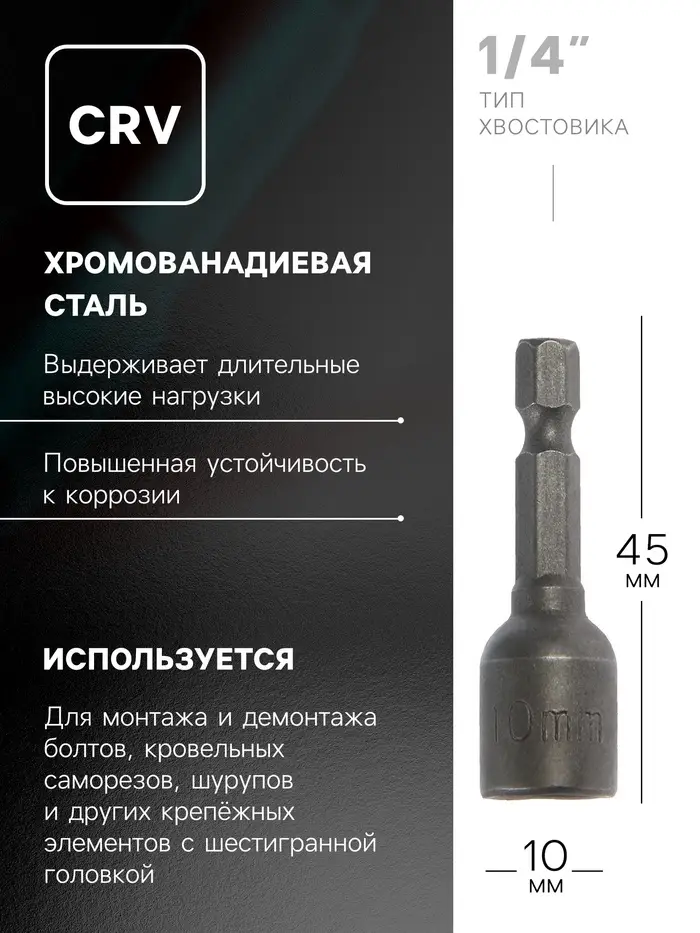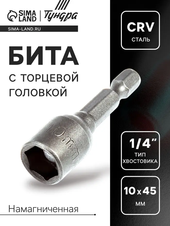 Бита с торцевой головкой ТУНДРА, сталь CrV, магнит, 10 х 45 мм