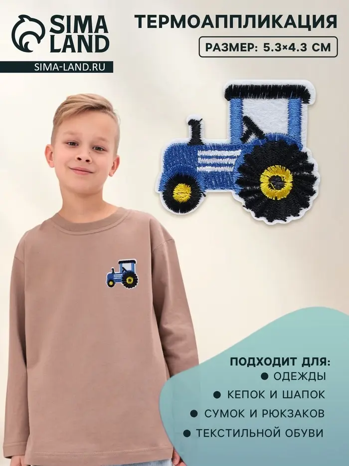 Термоаппликация «Трактор» — это красочные текстильные наклейки, которые легко прикрепляются к ткани с помощью утюга. С помощью нашивок можно декорировать одежду, обувь и даже рюкзаки или сумки. Добавьте яркости в повседневную жизнь!