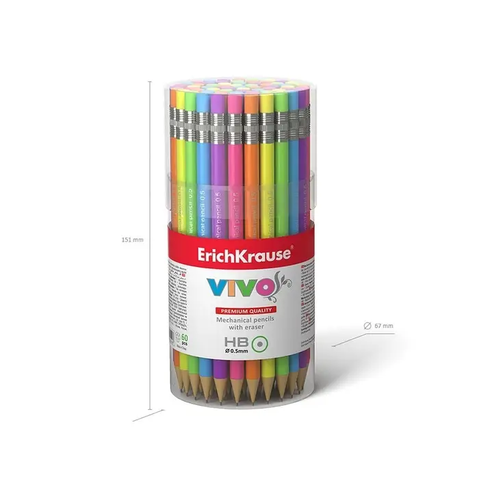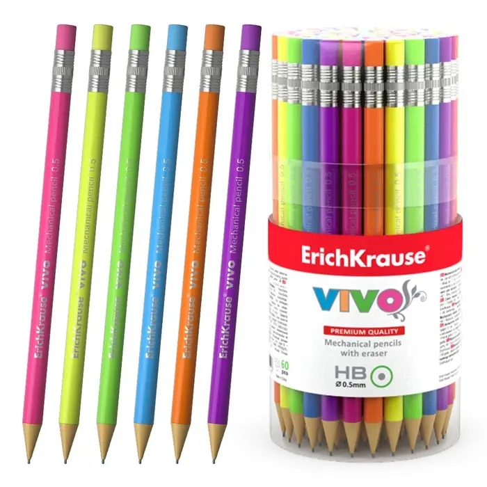 Карандаш механический ErichKrause "Vivo", НВ, грифель d=0.5 мм, в тубусе, микс
