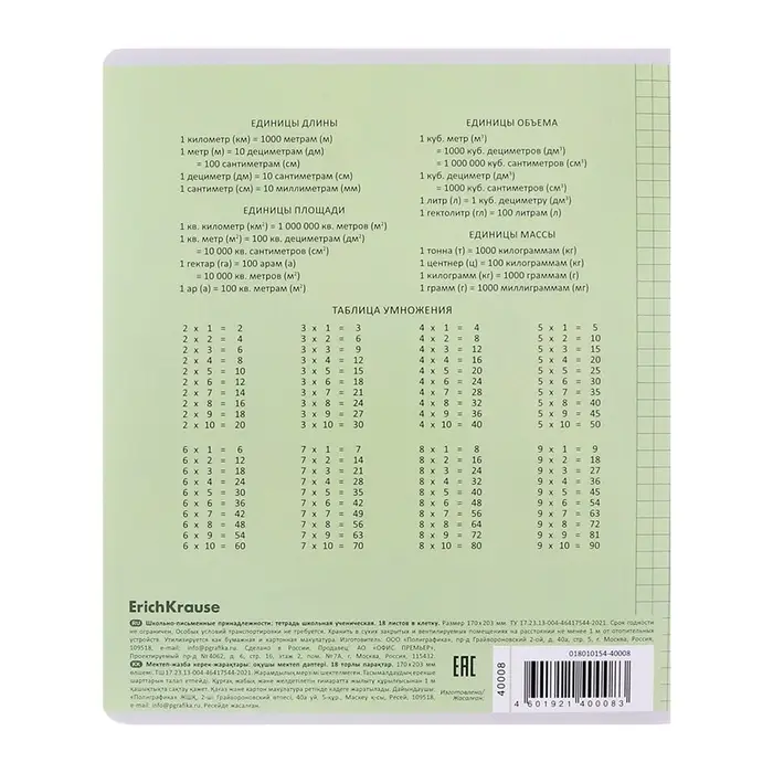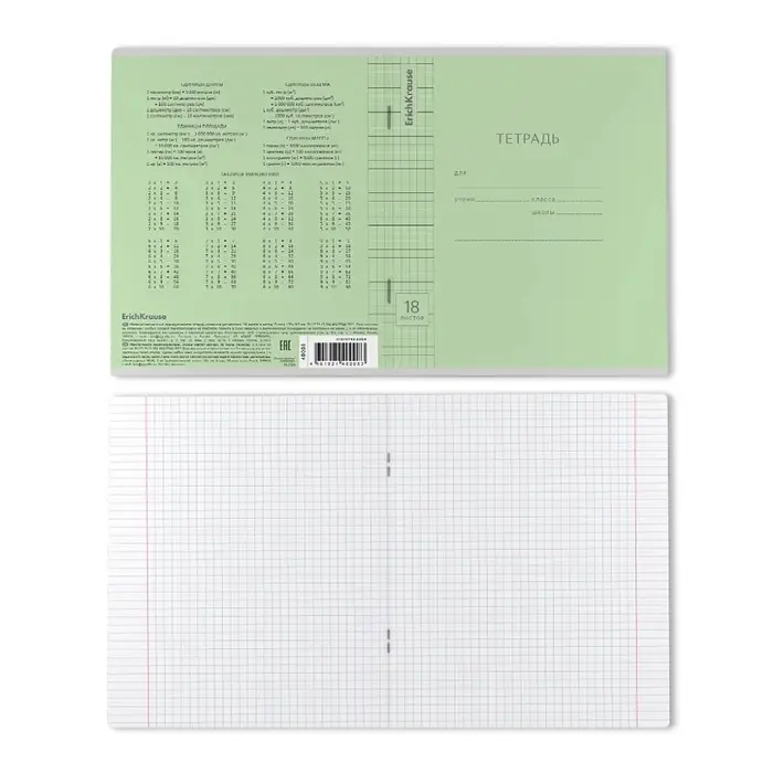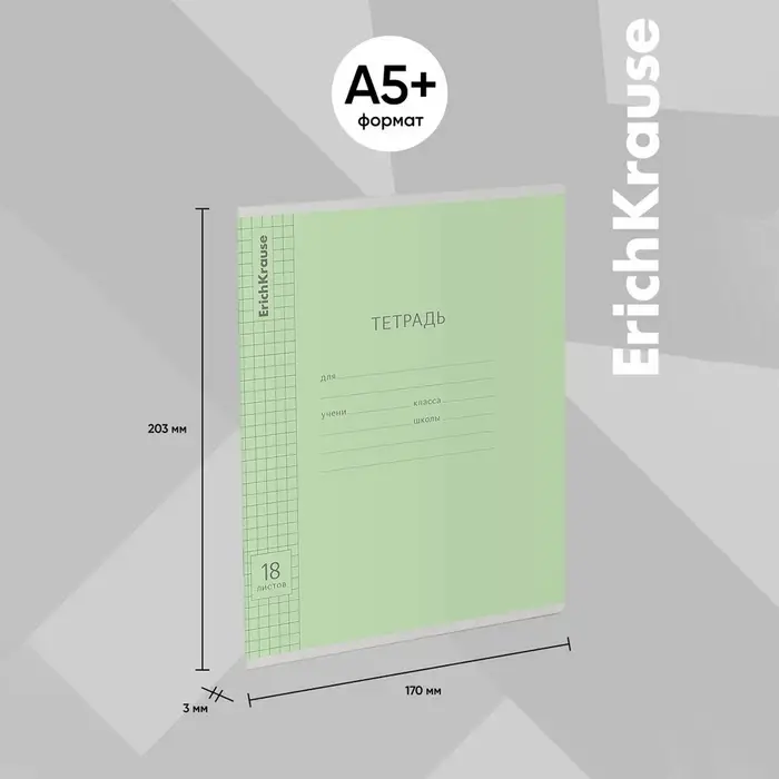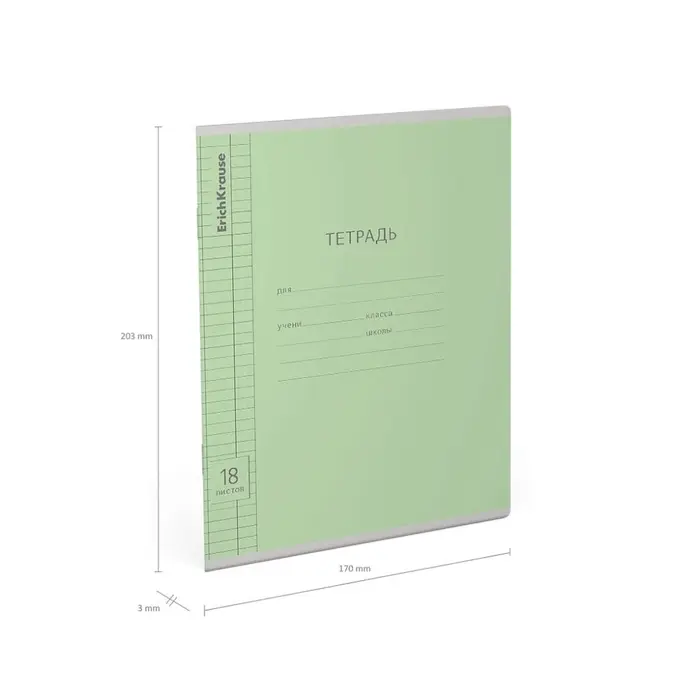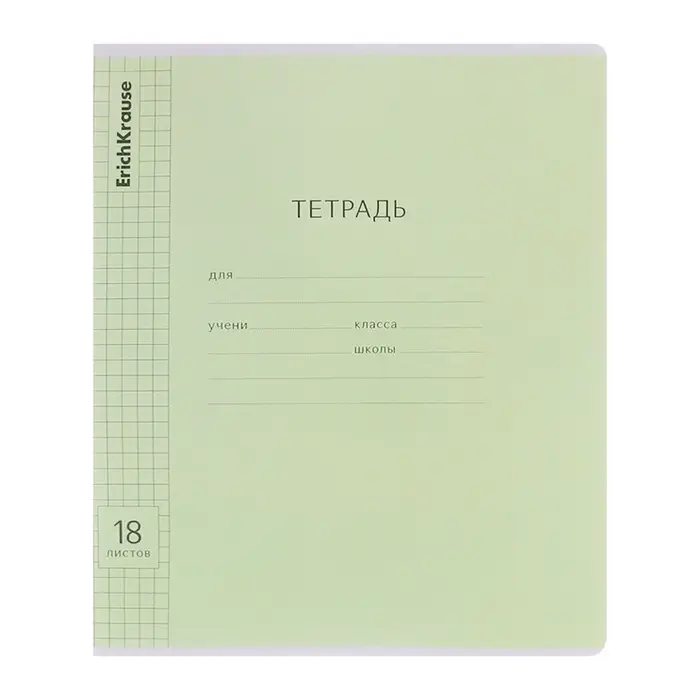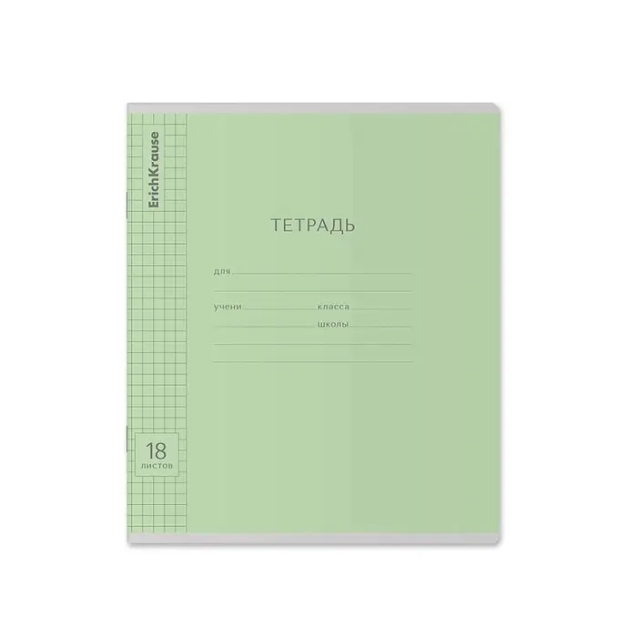 Тетрадь 18 листов в клетку ErichKrause «Классика», обложка мелованный картон, зелёная