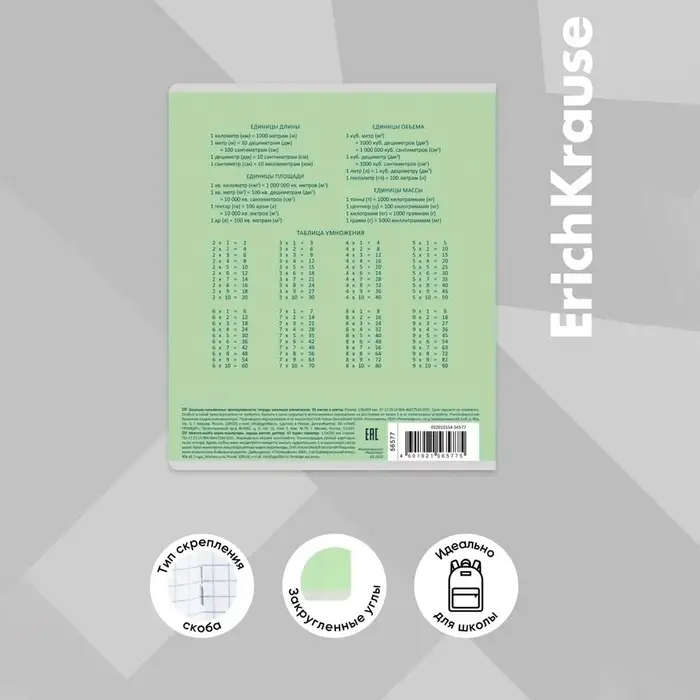 Тетрадь школьная ученическая формата А5+ (170 х 203 мм). Обложка из высококачественного мелованного картона плотностью 180 г/м2. В блоке 18 листов в клетку с полями. Бумага офсетная плотностью 60 г/м2. Цвет линовки - синий. Скругленные уголки обложки и блока. Тип скрепления - скоба. Тетради упакованы в термоусадочную пленку по 10 штук.