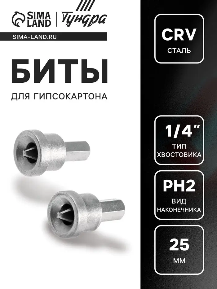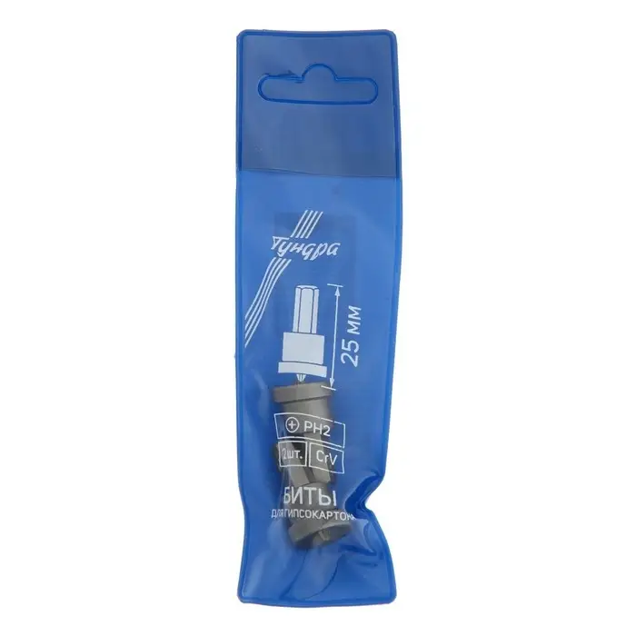 Биты для гипсокартона ТУНДРА, сталь CrV, PH2 х 25 мм, 2 шт.