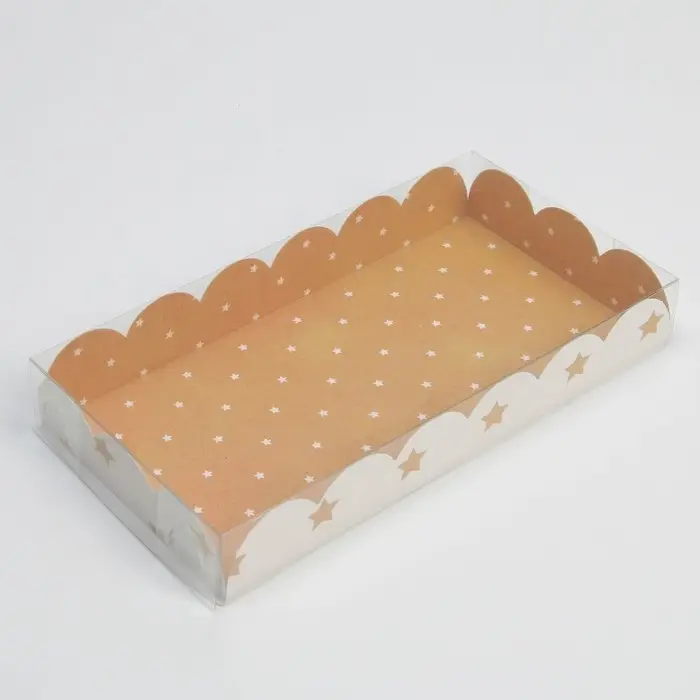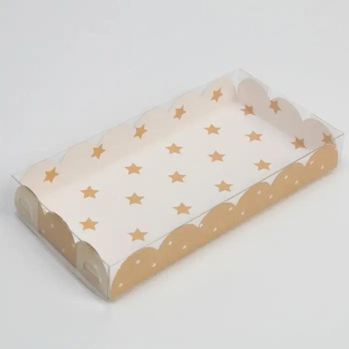 Коробка для печенья, кондитерская упаковка с пластиковой крышкой, «Звёздочки», 10.5 х 21 х 3 см