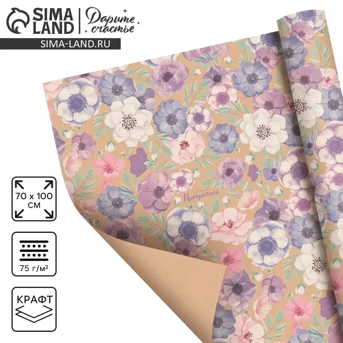 Бумага упаковочная крафтовая «Самой прекрасной», 70 х 100 см