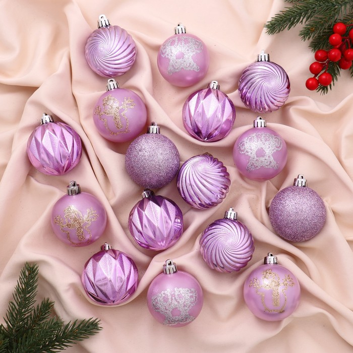 Набор шаров пластик d-6 см, 16 шт "Патрис полоски"