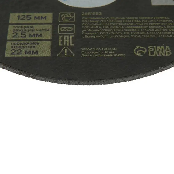 Круг отрезной по металлу ТУНДРА, армированный, 125×2.5×22 мм