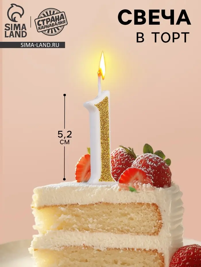 Свеча для торта с блестками «Цифра 1», золотая, 5.2 см