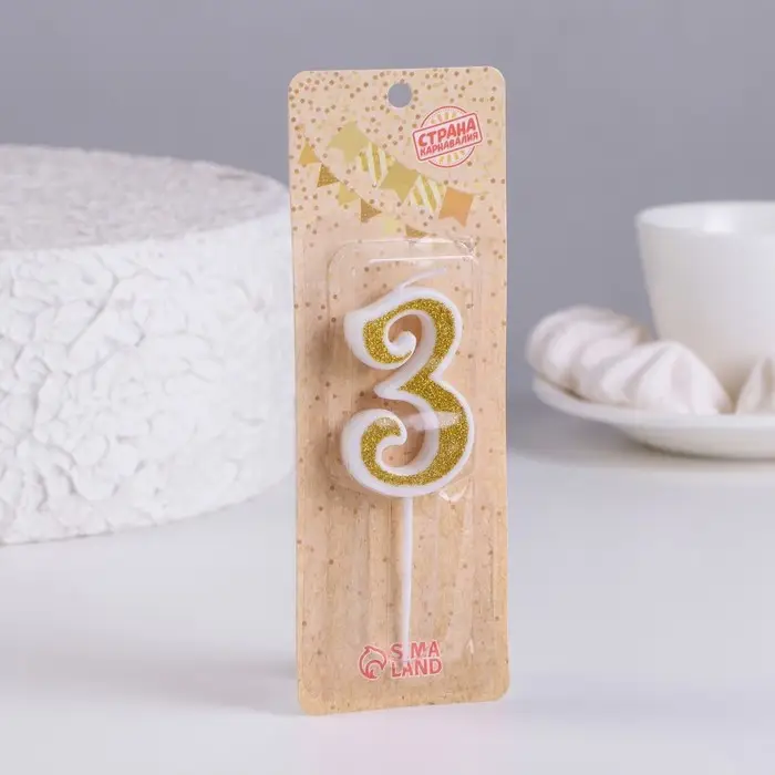 Свеча для торта с блестками «Цифра 3», золотая, 5.2 см