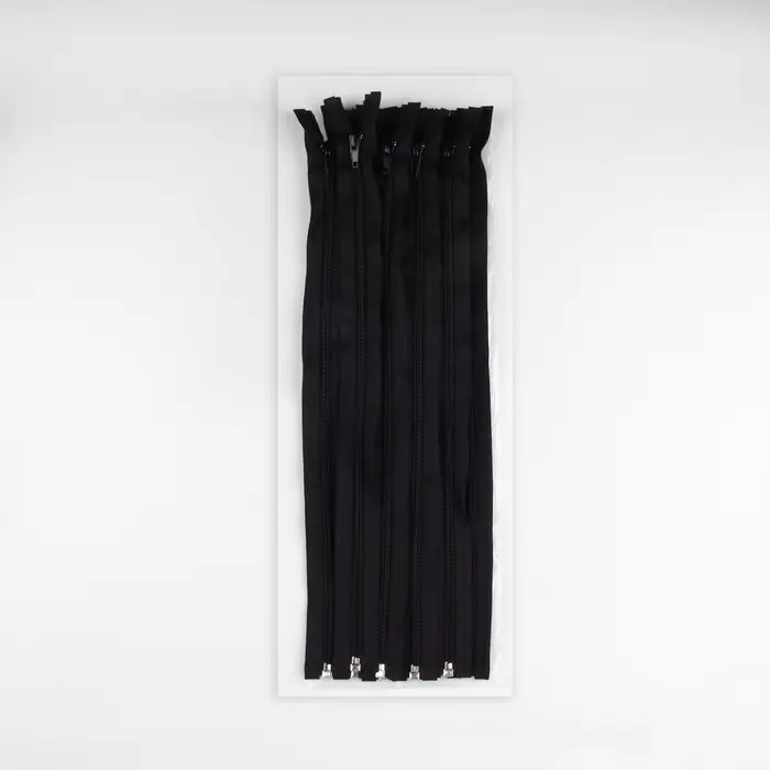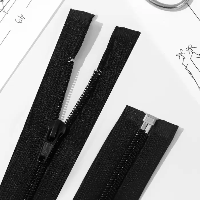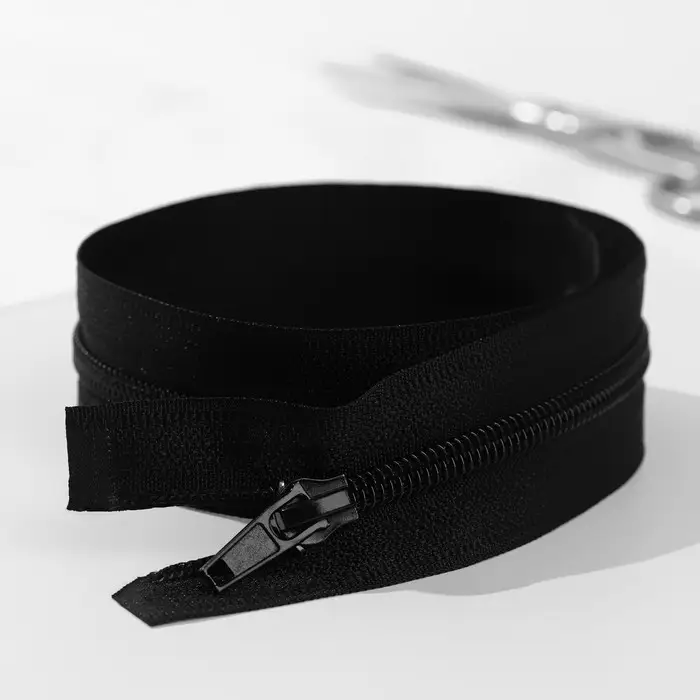 Бегунок плавно перемещается по зубчикам. Молния является разъёмной — замочек на конце полностью расстёгивается. Номер обозначает ширину зубчиков в миллиметрах. Чаще всего такую застёжку используют для шитья кардиганов, рубашек, джемперов и т.п.
